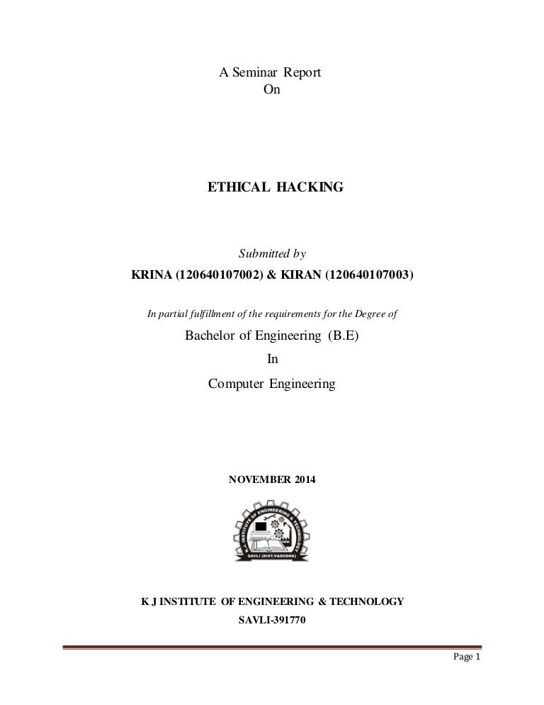 The process of hacking can thus become a boon as well as a curse for the society and it. ETHICAL HACKING A SEMINAR REPORT Page Link. Ethical Hacking Seminar PPT with pdf report.